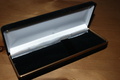 Black felt base with gold trim and white satin interior suitable for one pen